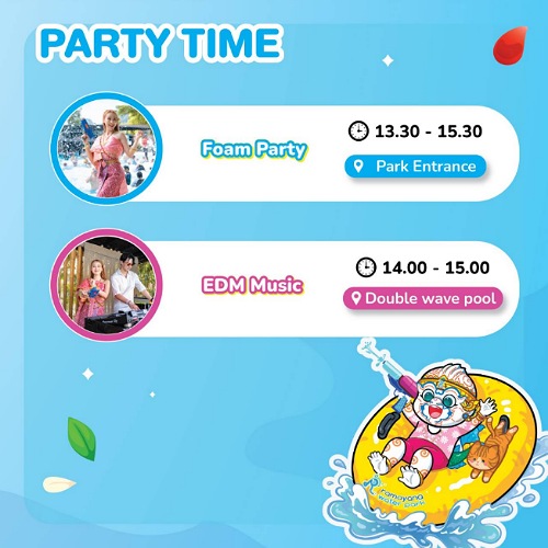 เตรียมตัวให้พร้อม! เทศกาลสงกรานต์นี้พาครอบครัว และชวนเพื่อนๆ มาสาดน้ำให้สุด มันส์ให้เต็มที่ กับสวนน้ำที่ใหญ่ และดีที่สุดในประเทศไทย! ‘สวนน้ำรามายณะ พัทยา’ เปิดให้บริการตั้งแต่เวลา 11.00 – 18.00 น. (ปิดบริการทุกวันพุธ) พิเศษ! วันพุธที่ 16 เม.ย. 68 เปิดให้บริการตามปกติ โดยสามารถจองบัตรเข้าสวนน้ำ
