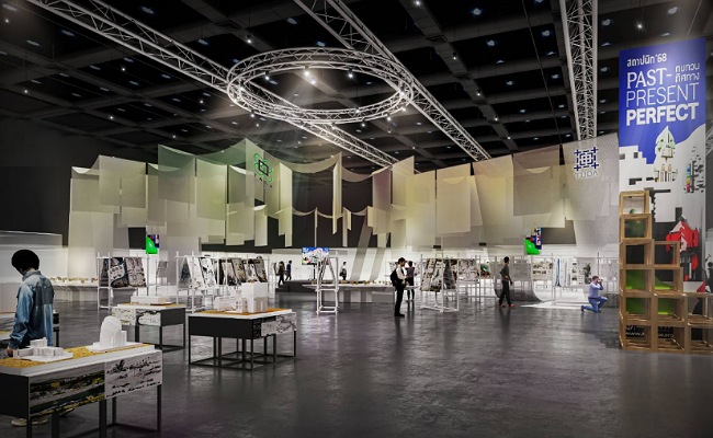 อดีต (PAST) ส่วนที่เป็นแกนกลางของนิทรรศการ ถูกออกแบบภายใต้ “จั่ว” ซึ่งเป็นสัญลักษณ์ของสถาปัตยกรรมไทยดั้งเดิมที่สื่อถึงรากเหง้าและภูมิปัญญาที่สืบทอดมาอย่างยาวนาน ปัจจุบัน (PRESENT) โครงสร้างรูปทรงกล่องร่วมสมัยที่สะท้อนถึงโลกแห่งสถาปัตยกรรมในปัจจุบัน การออกแบบที่เรียบง่ายแต่แฝงไปด้วยแนวคิดของความคิดสร้างสรรค์ เทคโนโลยี และรูปแบบการใช้ชีวิตในยุคสมัยใหม่ อนาคต (PERFECT/FUTURE) หลังคาวงกลมที่ครอบคลุมพื้นที่ส่วนหนึ่งของนิทรรศการ เปรียบเสมือนการเคลื่อนที่สู่วันพรุ่งนี้ เป็นตัวแทนของแนวคิดแห่งความต่อเนื่อง การพัฒนา และการส่งต่อแรงบันดาลใจจากรุ่นสู่รุ่น