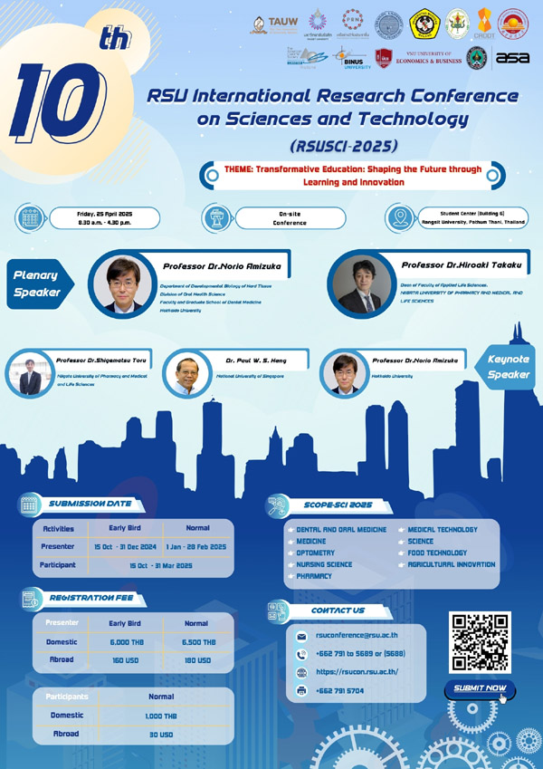 สถาบันวิจัย ม.รังสิต ขอเชิญร่วมงานประชุมวิชาการระดับนานาชาติ ครั้งที่ 10 (The 10th RSU International Research Coference (2025)
