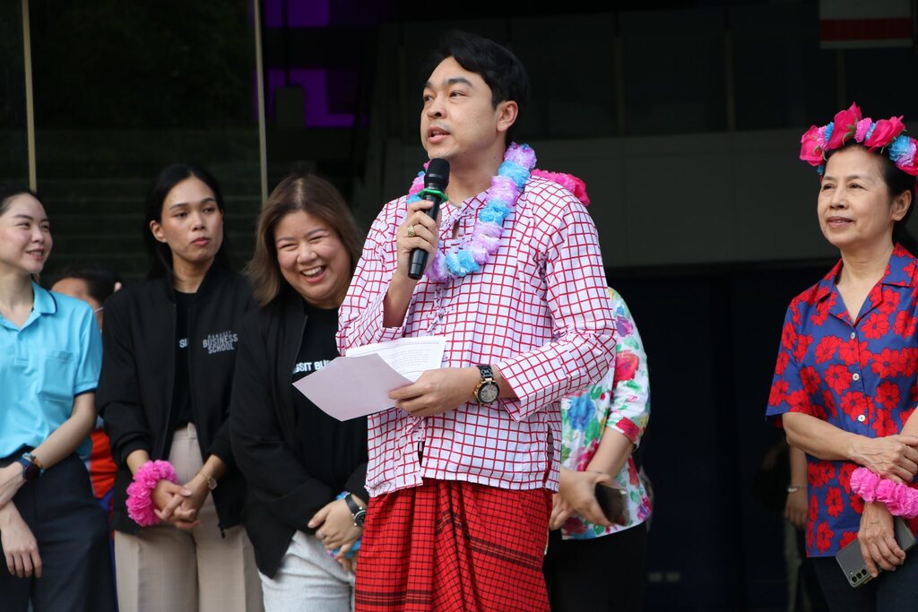 “เราเนรมิตรพื้นที่หน้าอาคาร 11 ทำเป็นลานกิจกรรมจัดบูทกว่า 30 บูท เสิร์ฟอาหาร และขนมนานาชาติ เปิดร้านขายระดมทุนเพื่อช่วยเหลือผู้ที่ได้รับผลกระทบจากเหตุการณ์แผ่นดินไหวเมื่อวันที่ 28 มีนาคม 2568 ที่ผ่านมา แรกเริ่มเลยโครงการนี้ ได้รับงบประมาณสนับสนุนจากมหาวิทยาลัย พวกเราจึงแจกโจทย์ให้นักศึกษาร่วมด้วยช่วยกันสร้างกิจกรรมขึ้นมา โดยการขายคูปองอาหาร และสามารถนำไปซื้ออาหารที่บูทใดก็ได้ และรายได้ทั้งหมดโดยไม่หักค่าใช้จ่ายที่เราได้รับจากการขายอาหารครั้งนี้ได้ถูกส่งตรงเข้าสู่บัญชีมหาวิทยาลัยรังสิตเพื่อการกุศล เมนูอาหารที่นักศึกษาต่างชาตินำมาพรีเซนต์ขายในครั้งนี้ หลายเมนูเราก็แทบไม่เคยพบเห็น ไม่ว่าจะเป็น ข้าวหุงของภูฏาณ น้ำหมัก แครกเกอร์ และข้าวสาลีของเด็กๆ ฟินแลนด์ หรือเค้กชอกโกแลตและขนมอบของตุรกี อาหารและขนมขายหมดอย่างรวดเร็ว แม้เด็ก ๆ จะทำมาปริมาณเยอะมากพอสมควร แต่ผู้ร่วมงานประมาณ 500 คน ก็นับเป็นจำนวนที่เยอะไม่แพ้กัน ยอดบริจาคจากกิจกรรมในวันนั้น สุทธิ 48,979 บาท และยอดบริจาครวมตลอด 10 วัน ของแคมเปญนี้ เพื่อช่วยผู้ประสบภัยจากเหตุุแผ่นดินไหว รวมทั้งสิ้น 381,384 บาท จากทุกช่องทาง ซึ่งมีค่ามากต่อผู้ได้รับความเดือดร้อน และทีมงานได้กระจายเงินก้อนนี้ไปยังผู้ได้รับความเดือดร้อนเร่งด่วน ผมเองต้องขอขอบคุณทุกแรงสนับสนุน การมีส่วนร่วม การส่งต่อบอกต่อ เพื่อสร้างสรรค์สิ่งที่ดีสู่สังคม และการช่วยกันบ่มเพาะนักศึกษาของเราให้ร่วมสร้างสังคมแห่งการให้และการแบ่งปันครับ”