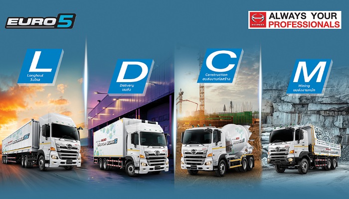 HINO EURO 5 – รถบรรทุกระดับมืออาชีพที่เหมาะสมกับทุกธุรกิจ พัฒนาเพื่อตอบสนองการใช้งาน เชิงพาณิชย์ที่หลากหลายภายใต้แนวคิด “Best Fit” โดยยึดหลัก 3C มุ่งมั่นรักษาสิ่งแวดล้อม (Commit), สอดคล้องกับ การใช้งานจริง (Correspond) และเพิ่มประโยชน์ให้ผู้ประกอบการ ทั้งด้านความประหยัดและความปลอดภัย (Contribute) รองรับครอบคลุมกลุ่มธุรกิจขนส่งหลักกับแนวคิด LDCM อันได้แก่