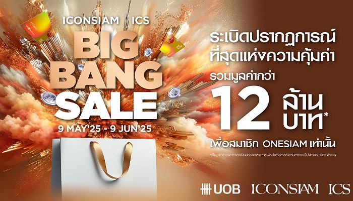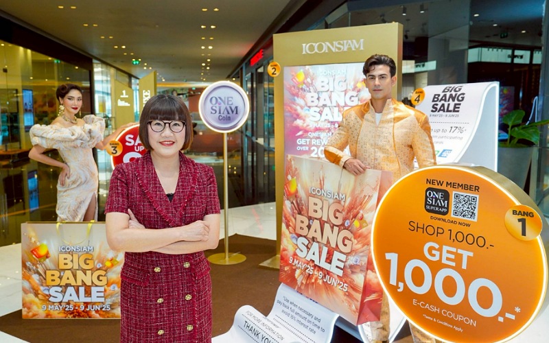 ไอคอนสยาม ระเบิดแคมเปญใหญ่แห่งปี “ICONSIAM BIG BANG SALE 2025” ปลุกกระแส ช้อปปิ้งกลางปีด้วยโปรโมชั่นสุดคุ้มค่าเฉพาะสมาชิกวันสยาม ตอกย้ำจุดแข็งผู้นำศูนย์การค้าที่มีฐานกลุ่มลูกค้ากำลังซื้อสูง แจกรางวัลและสิทธิประโยชน์รวมกว่า 12 ล้านบาท พร้อมขยายฐานลูกค้าใหม่ เพียงสมัครสมาชิกในแคมเปญนี้ ช้อปครบ 1,000 บาท รับคืน E-Cash Coupon มูลค่า 1,000 บาททันที มั่นใจสามารถกระตุ้นกำลังซื้อผู้บริโภคด้วยการส่งมอบประสบการณ์ช้อปปิ้งระดับเวิลด์คลาส ผ่านการจับมือกับพันธมิตรคู่ค้า ทั้งธนาคารยูโอบี ประเทศไทย และสินค้าแบรนด์ต่างๆ มอบสิทธิพิเศษและส่วนลดต่างๆ สูงสุด 80% ทำให้เกิดบรรยากาศคึกคักในตลาดกลุ่มลูกค้าภายในประเทศ เริ่มแคมเปญใหญ่ตั้งแต่วันที่ 8 พฤษภาคม 2568 ถึงวันที่ 9 มิถุนายน 2568 นี้