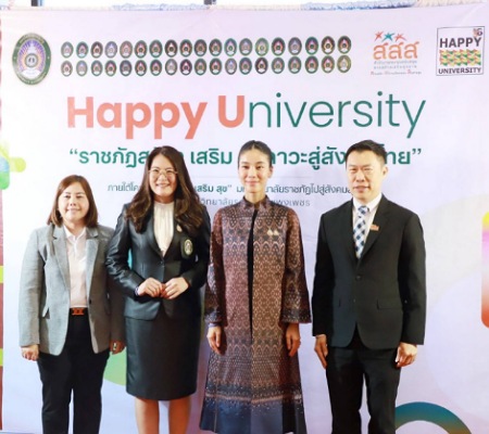 ดังนั้นเมื่อการดำเนินงานดังกล่าวของโครงการฯ ได้มาถึงระยะสุดท้ายแล้ว จึงได้จัด “เวที Happy University ราชภัฏ สร้าง เสริม สุขภาวะสู่สังคมไทย” เพื่อเป็นการนำเสนอผลงานของโครงการต่อสาธารณชนอย่างเป็นทางการ โดยมีเป้าหมายที่สำคัญเพื่อสะท้อนภาพรวมของการดำเนินงานในมหาวิทยาลลัยราชภัฏทั้ง 38 แห่ง ถ่ายทอดผลลัพธ์ของกิจกรรมที่เกิดขึ้นจริงในแต่ละพื้นที่ ได้แบ่งปันแนวทางปฏิบัติที่ดี (Best Practices) และนวัตกรรมที่สามารถต่อยอดได้ และสร้างแรงบันดาลใจให้กับมหาวิทยาลัยและหน่วยงานอื่นๆ ในการขับเคลื่อนสุขภาวะอย่างยั่งยืน ซึ่งเวทีนี้ไม่เพียงแต่เป็นเวทีสรุปผล แต่ยังเป็นเวทีแห่งการเรียนรู้ร่วมกันของเครือข่ายมหาวิทยาลัยราชภัฏทั่วประเทศ ที่ได้ร่วมแรงร่วมใจ พัฒนาคน พัฒนาสังคม ด้วยหัวใจของความสุข