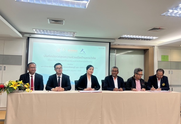 มหาวิทยาลัยเทคโนโลยีพระจอมเกล้าธนบุรีและบริษัท อัคราเดียน จำกัดร่วมพิธีลงนามบันทึกข้อตกลงความร่วมมือด้านการวิจัย เรื่อง การวิจัยและพัฒนาระบบการจัดการพลังงาน ที่คณะพลังงานสิ่งแวดล้อมและวัสดุ มหาวิทยาลัยเทคโนโลยีพระจอมเกล้าธนบุรี โดยมี ดร.ก้องกาญจน์ วชิรพนัง รองอธิการบดีฝ่ายบุคคล พร้อมด้วย ผศ.ดร.กูสกานา กูบาฮา คณบดีคณะพลังงานสิ่งแวดล้อมและวัสดุ รศ. ดร.อดิศักดิ์ นาถกรณกุล รองคณบดีฝ่ายบริหาร คณะพลังงานสิ่งแวดล้อมและวัสดุ ดร.รุ่งโรจน์ สงค์ประกอบ รองคณบดีฝ่ายพัฒนาเชิงกลยุทธ์และถ่ายทอดเทคโนโลยีคณะพลังงานสิ่งแวดล้อมและวัสดุ ผศ.ดร.พัฒนะ รักความสุข รองคณบดีอาวุโสฝ่ายวิจัย คณะพลังงานสิ่งแวดล้อมและวัสดุ และดร.ปรีชา อาการศ หัวหน้าฝ่ายพัฒนาความยั่งยืน มหาวิทยาลัยเทคโนโลยีพระจอมเกล้าธนบุรี ขณะที่ภาคเอกชน นำโดย คุณรัตนดา ถนอมศักดิ์ ประธานเจ้าหน้าที่บริหาร บริษัท อัคราเดียน จำกัด คุณรัชชา สุขชม รองประธานเจ้าหน้าที่บริหารบริษัท ลาร์ซ แอนด์ ลอเร็ล จำกัด คุณนัธที วงศ์พยัคฆ์ ผู้จัดการฝ่ายขายและการตลาด บริษัท อัคราเดียน จำกัด และคุณพรทิพย์ ลิมปิชัยโสภณ ผู้ประสานงานโครงการ และสื่อมวลชน เข้าร่วมเป็นสักขีพยานในพิธีลงนามบันทึกข้อตกลงความร่วมมือด้านการวิจัย เรื่อง การวิจัยและพัฒนาระบบการจัดการพลังงานในครั้งนี้