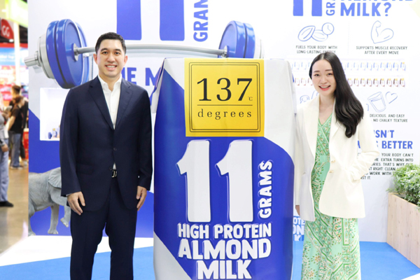 นางสาวอริสา อร่ามวัฒนานนท์ กรรมการผู้จัดการและผู้ก่อตั้ง พร้อมด้วย นายธนภูมิ อร่ามวัฒนานนท์กรรมการผู้อำนวยการฝ่ายปฏิบัติการ บริษัท ซิมเพิ้ล ฟู้ดส์ จำกัด ร่วมออกบูธในงาน THAIFEX-ANUGA ASIA 2025 งานแสดงสินค้าอาหารและเครื่องดื่มที่ยิ่งใหญ่และครบวงจรที่สุดแห่งเอเชีย ส่งนวัตกรรมและเทคโนโลยีใหม่ครั้งแรกในไทย นมอัลมอนด์โปรตีนสูง 11 กรัม สูตรดั้งเดิมและสูตรช็อคโกแลต แบรนด์ 137 ดีกรี® บุกงาน เผยลูกค้าไทยและต่างชาติให้การตอบรับอย่างล้นหลาม ด้วยความดื่มง่าย เนื้อบางเบา ไม่สากคอ ไม่เติมน้ำตาลทราย และสามารถดื่มได้ทั้งแบบแช่เย็นและไม่แช่เย็นแถมยังเก็บได้ถึง 1 ปี โดยไม่ต้องแช่เย็น สร้างความฮือฮาให้กับผู้มาเยี่ยมชมบูธเป็นอย่างมาก พร้อมเดินหน้าขยายฐานลูกค้าต่อเนื่อง ยกขบวนผลิตภัณฑ์หลากหลายแบรนด์ในเครือ ภายใต้แบรนด์ 137 ดีกรี® และ โฮลี่นัทส์® ด้วยแนวคิด ‘Clean Inside Out: เพราะสุขภาพที่ดีต้องดีจากภายในสู่ภายนอก’ เดินหน้าผลักดันผลิตภัณฑ์นมทางเลือกจากพืชเพื่อสุขภาพสู่เวทีโลก
