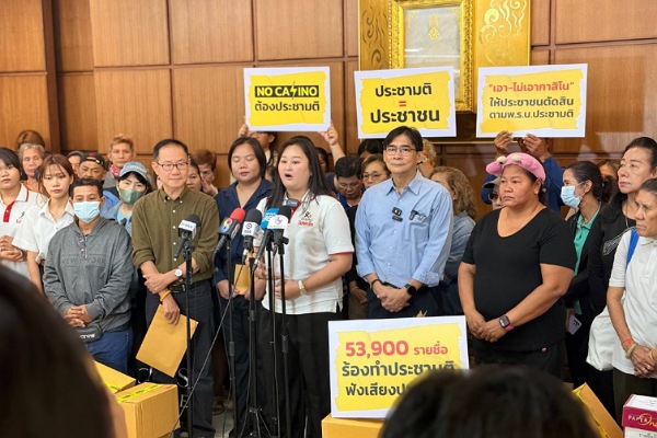 ภาคประชาชนหยุดพนัน จัดไรเดอร์ส่งด่วน 53,900 รายชื่อเรียกร้องทำประชามติฟังเสียงประชาชน “เอา-ไม่เอากาสิโน” ท้าสมัยหน้ายืดอกชูเป็นนโยบายหาเสียงให้ประชาชนตัดสิน วอนอย่าใช้กลไกสภาเสียงข้างมากลากกาสิโน