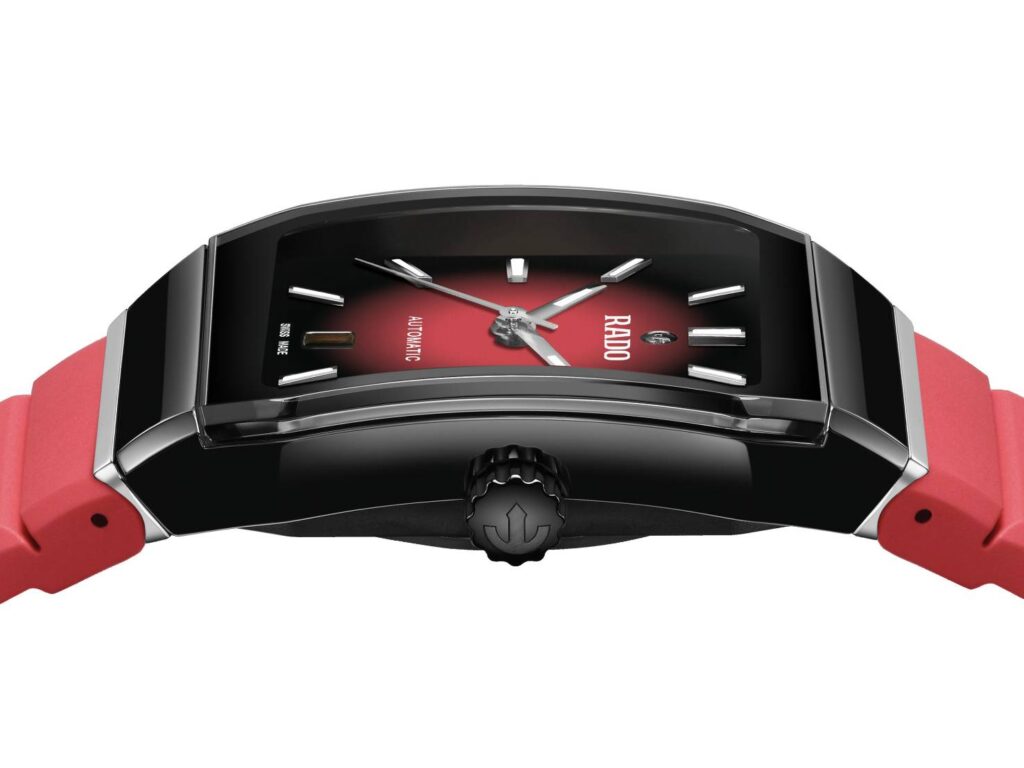 Rado Anatom เรือนสุดท้ายในคอลเล็กชั่นนี้มาในโทนสีแดงสว่าง ซึ่ง Rado ได้รับแรงบันดาลใจมาจากผลเกรปฟรุตผ่าครึ่ง เผยให้เห็นความชุ่มฉ่ำด้านใน ที่ยังสะท้อนถึงความสดชื่นของยามเช้าแห่งฤดูร้อนด้วย