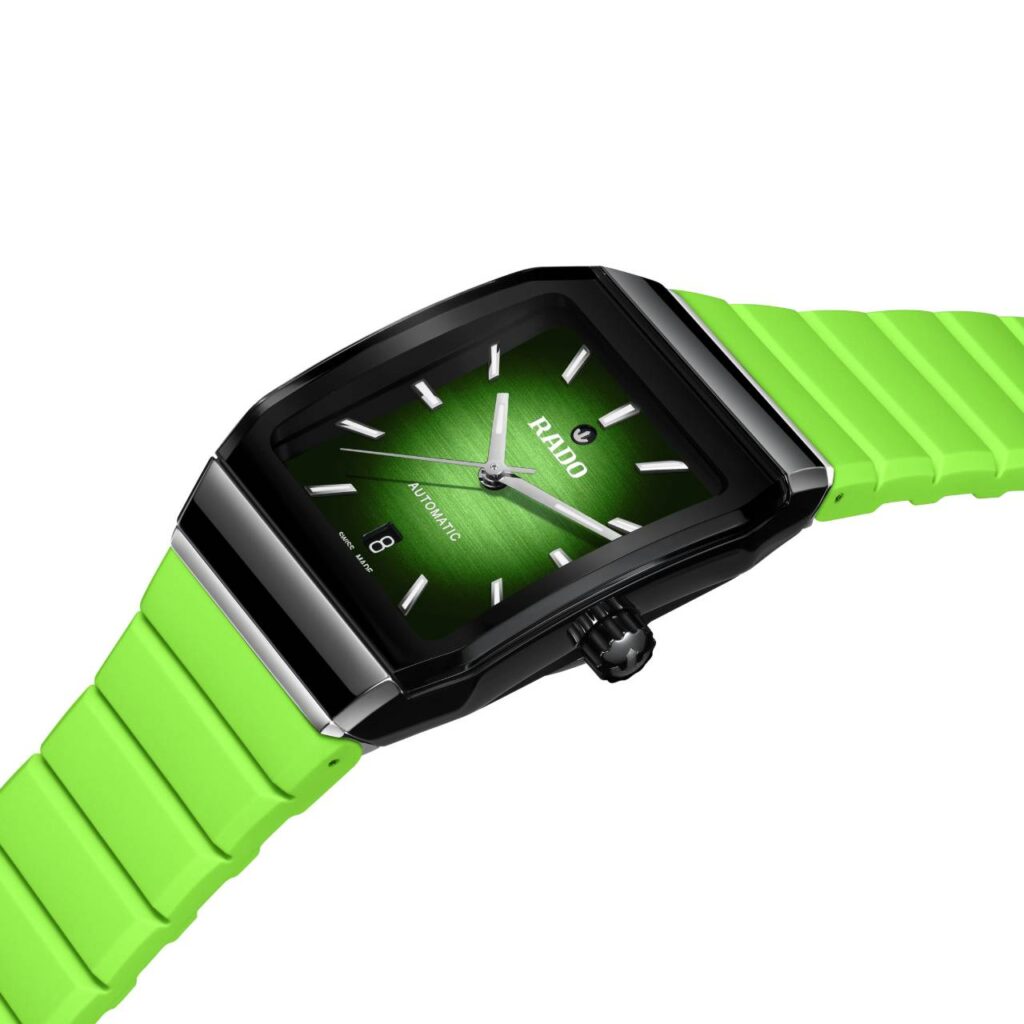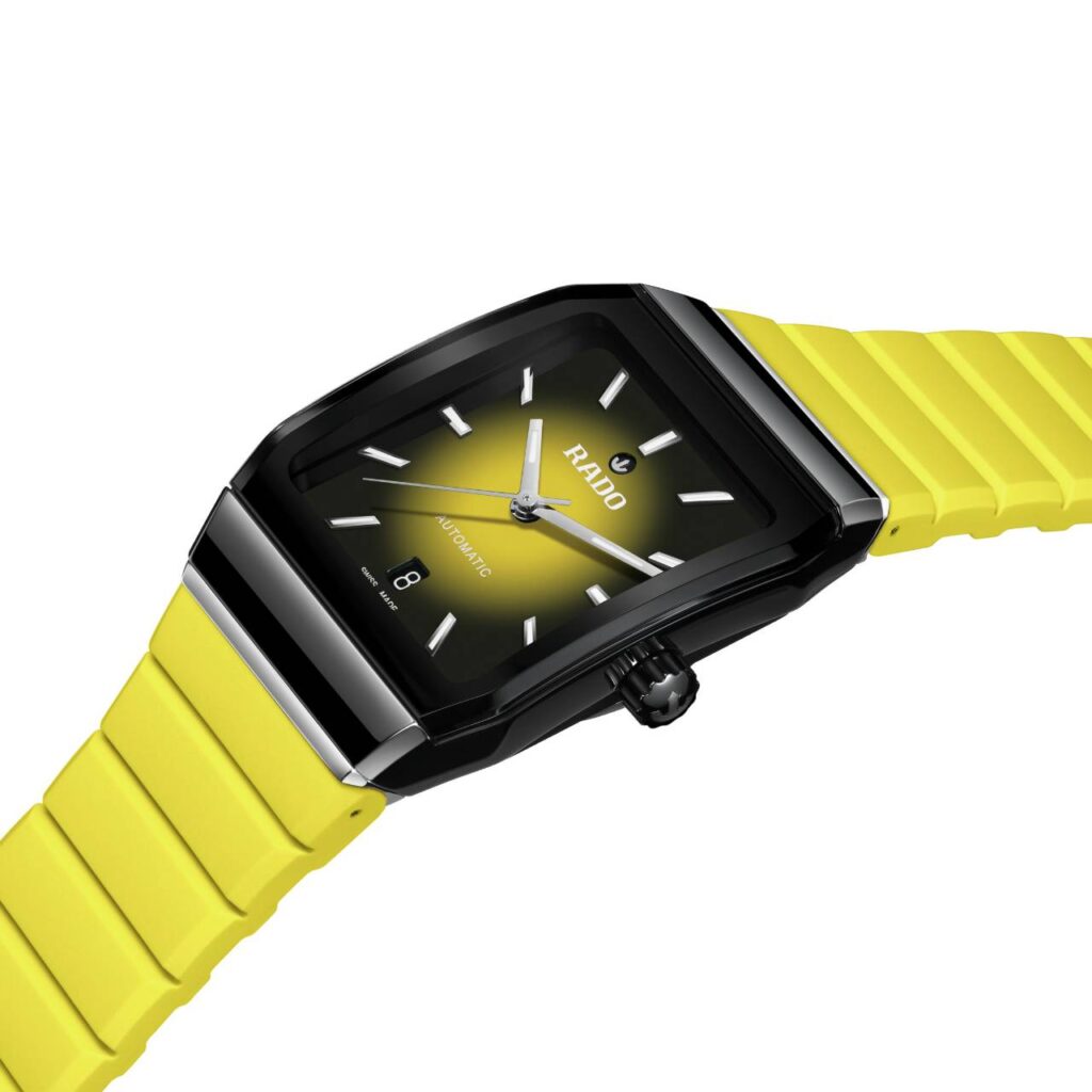 แน่นอนว่าสิ่งที่โดดเด่นที่สุดสำหรับ Rado Anatom ซีรีส์ใหม่ คือสีสันสดสว่างแห่งฤดูร้อน เริ่มต้นกันที่เรือนสีเหลืองเลม่อน ตัวแทนแห่งแสงแดดตอนกลางวัน บนหน้าปัดมีการไล่สีจากสีดำไปสู่สีเหลือง สีเดียวกับตัวสายนาฬิกาที่ทำจากยางฟลูโอรีน (FKM) เป็นเรือนที่สะท้อนบุคลิกอันสดใสในทุกวัน ให้เราเปล่งประกายแบบเป็นตัวเองได้ทุกที่ ทุกสถานการณ์