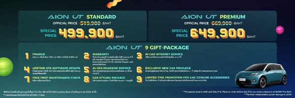 นอกจากการอัปเกรดฟีเจอร์แล้ว เรายังมอบสิทธิพิเศษเพิ่มเติมให้กับลูกค้า AION UT เพื่อสร้างความมั่นใจ และความสะดวกสบายในการเริ่มต้นใช้งาน ดังนี้: