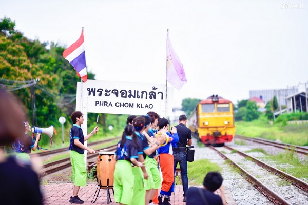 กิจกรรมในช่วงเช้าเริ่มต้นอย่างคึกคักด้วยการรับน้องรถไฟ ณ สถานีหัวลำโพง มีนักศึกษาใหม่กว่า 700 คนร่วมเดินทางโดยขบวนรถไฟพิเศษไปยังสถานีพระจอมเกล้า พร้อมกิจกรรมสันทนาการตลอดเส้นทาง เพื่อสร้างสายสัมพันธ์ระหว่างผู้บริหาร คณาจารย์ รุ่นพี่และรุ่นน้องในบรรยากาศที่อบอุ่น สนุกสนาน และน่าจดจำ เมื่อวันศุกร์ที่ 27 มิถุนายน 2568 โดยขบวนรถไฟออกจากสถานีเวลา 08.00 น. ถึงสถานีพระจอมเกล้าเวลา 09.00 น. โดยมีผู้บริหาร คณาจารย์ รุ่นพี่ไปยืนรอต้อนรับเข้าสู่สถาบันอย่างอบอุ่น