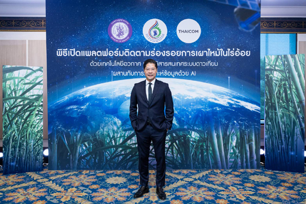 “จากการดำเนินการตามมาตรการดังกล่าว สามารถลดปัญหาฝุ่น PM 2.5 จากการเผาอ้อยปีที่ผ่านมา ทำให้มีปริมาณอ้อยสดเข้าหีบสูงสุดที่ 85% 78.3 ล้านตัน ปริมาณเผาอ้อยเข้าหีบเพียง 15% 13.68 ล้านตัน ลดลงจากฤดูการผลิตปี 2566/2567 ที่มีปริมาณการเผาอ้อยเข้าหีบทั้งฤดูกาลผลิตกว่า 29% 24 ล้านตัน ลดการเผาอ้อยลงได้กว่า 10 ล้านตัน เทียบเท่าลดการเผาป่าลงได้กว่า 1 ล้านไร่ หรือลดการปลดปล่อย PM 2.5 ลงได้กว่า 5,000 ตัน/ปี ซึ่งต่ำกว่าเป็นประวัติการณ์ นับเป็นโอกาสอันดี ที่ สอน. และไทยคม ได้แนะนำให้ทุกคนรู้จักกับแพลตฟอร์มติดตามร่องรอยการเผาไหม้ในไร่อ้อย ด้วยเทคโนโลยีอวกาศและภูมิสารสนเทศระบบดาวเทียมผสานกับการวิเคราะห์ข้อมูลด้วย AI เครื่องมือสำคัญอย่างเป็นทางการ เพื่อแสดงถึงความมุ่งมั่นของเรา ที่จะเดินหน้าในการช่วยลดปัญหาสิ่งแวดล้อมลดการเผาอ้อย การปล่อยก๊าซคาร์บอนไดออกไซด์ และฝุ่น PM 2.5 อย่างครอบคลุม”