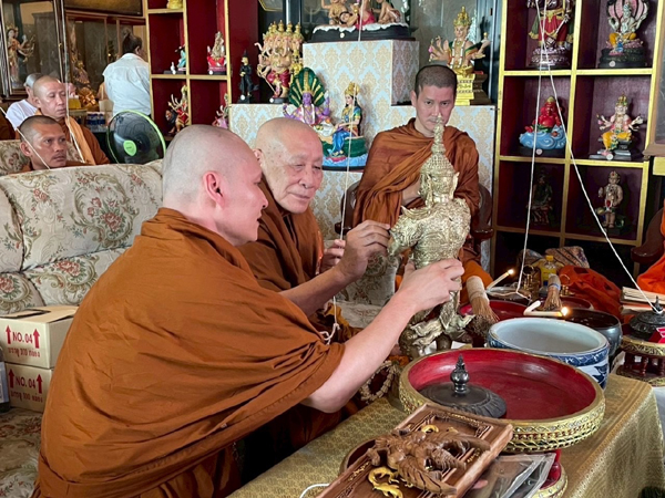 ทั้งนี้ “หลวงตาม้า” วัดถ้ำเมืองนะ ท่านเมตตาเดินทางมาเป็นประธานพิธีฝ่ายสงฆ์ นั่งอธิษฐานจิตลงแผ่นทอง และ ธาตุวัตถุมงคลต่างๆ พร้อมคณะสงฆ์ที่ติดตามมา หลายรูป และ พระครูเกษมถาวรคุณ เจ้าอาวาสวัดบางเลน ร่วมพระสงฆ์ 9 รูป สวดเจริญพุทธมนต์ ชยันโต”ชัยชนะจงบังเกิด” ตลอดพิธีเททอง จนแล้วเสร็จ…
