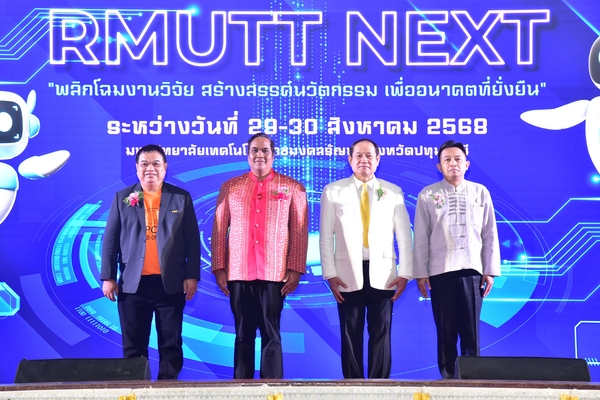 มหาวิทยาลัยเทคโนโลยีราชมงคลธัญบุรี (มทร.ธัญบุรี) จัดงานมหกรรมวิจัยและนวัตกรรมครั้งยิ่งใหญ่ “RMUTT EXPO 2025” ภายใต้แนวคิด “RMUTT NEXT พลิกโฉมงานวิจัย สร้างสรรค์นวัตกรรม เพื่ออนาคตที่ยั่งยืน” โดยมี ดร.พันธุ์เพิ่มศักดิ์ อารุณี ผู้ช่วยปลัดกระทรวงการอุดมศึกษา วิทยาศาสตร์ วิจัยและนวัตกรรม (อว.) ให้เกียรติเป็นประธานในพิธีเปิด ณ หอประชุมราชมงคล มทร.ธัญบุรี จ.ปทุมธานี ซึ่งการจัดงานครั้งนี้สะท้อนวิสัยทัศน์ของมหาวิทยาลัยที่มุ่งมั่นยกระดับผลงานวิจัยและนวัตกรรมไปสู่การใช้ประโยชน์จริง สอดคล้องกับนโยบาย “สร้างปัญญา เปิดโอกาส สร้างอนาคต” และตอบรับกับเป้าหมายการพัฒนาที่ยั่งยืน (SDGs) ขององค์การสหประชาชาติ