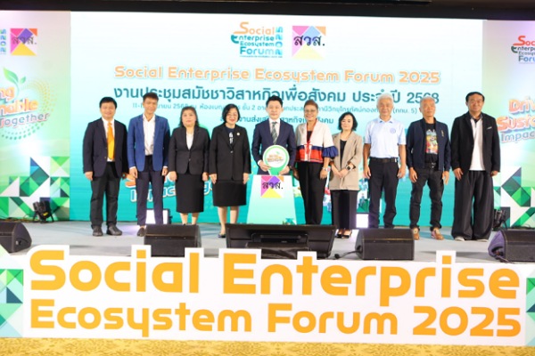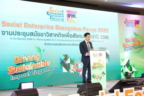 Social Enterprise Ecosystem Forum 2025 ณ ห้องประชุมเบญจพัชร ชั้น 2 อาคารเอนกประสงค์ สถานีวิทยุโทรทัศน์กองทัพบก (ททบ.5) ระหว่างวันที่ 11-12 กันยายน 2568 เพื่อให้วิสาหกิจเพื่อสังคมและกลุ่มกิจการเพื่อสังคม ภาครัฐ ภาคเอกชน ผู้มีส่วนได้เสีย ร่วมระดมความคิดเห็น แนวทางการพัฒนาวิสาหกิจเพื่อสังคมและกลุ่มกิจการเพื่อสังคม เพื่อตอบโจทย์การเปลี่ยนแปลงด้านเศรษฐกิจ สังคมและสิ่งแวดล้อม เดินหน้าพัฒนาสังคมและชุมชนเพื่อความยั่งยืน และกำหนดกรอบวาระการจัดงานประชุมสมัชชาวิสาหกิจเพื่อสังคม ประจำปี 2569 ที่จะมีแผนการขยายความร่วมมือและเครือข่ายใหม่ ๆ เพิ่มขึ้น โดย นายอัครพล ลีลาจินดามัย ผู้อำนวยการสำนักงานส่งเสริมวิสาหกิจเพื่อสังคม เป็นประธาน