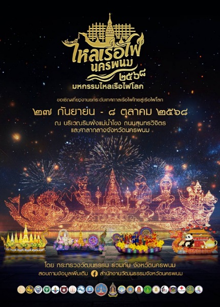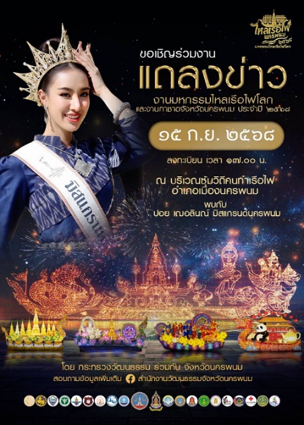 • กิจกรรมไหลเรือไฟโบราณ สักการะพระธาตุพนม พิธีรำบูชาพระธาตุพนม 7-8 ต.ค. 68 ณ วัดพระธาตุพนม วรมหาวิหาร