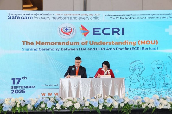 สถาบันรับรองคุณภาพสถานพยาบาล (องค์การมหาชน) หรือ สรพ. จัดพิธีลงนามบันทึกลงนามความร่วมมือ (MOU) ร่วมกับ ECRI Asia Pacific (ECRI Berhad) ซึ่งเป็นองค์กรไม่แสวงหาผลกำไรในระดับนานาชาติที่ดำเนินการวิจัยด้านความปลอดภัยของผู้ป่วยและเทคโนโลยีทางการแพทย์ ในงานวันแห่งความปลอดภัยของผู้ป่วยโลก ครั้งที่ 7 (The 7th World Patient Safety Day) และ วันแห่งความปลอดภัยของผู้ป่วยและบุคลากรสาธารณสุขของประเทศไทย ครั้งที่ 9 (The 9th Thailand Patient and Personnel Safety Day) ประจำปีงบประมาณ 2568 เมื่อวันที่ 17 กันยายน 2568 ณ โรงแรมอัศวิน แกรนด์ คอนเวนชั่น หลักสี่ กรุงเทพฯ โดยมี พญ.ปิยวรรณ ลิ้มปัญญาเลิศ ผู้อำนวยการสรพ. และ MR. WOO KIT SEONG (Mr.Eric Woo) ECRI Asia Pacific (ECRI Berhad) เป็นผู้แทนของทั้ง 2 หน่วยงานในการลงนาม