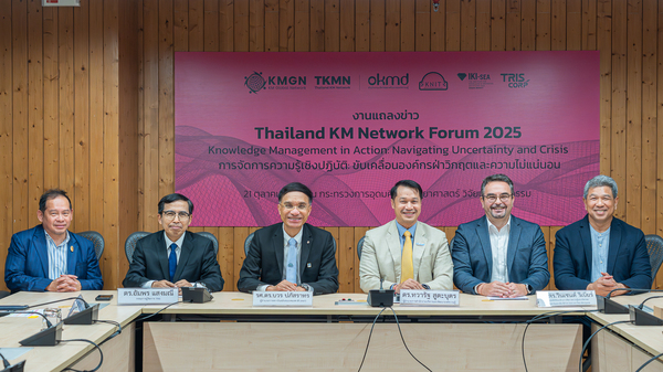 The Thailand Knowledge Management Network (TKMN)—comprising the Office of Knowledge Management and Development (Public Organization) or OKMD, the Institute for Knowledge and Innovation Southeast Asia (IKI-SEA) Bangkok University, TRIS Corporation, and the Knowledge Network Institute of Thailand (KNIT)—announced the upcoming Thailand KM Network Forum 2025, to be held on Tuesday, 21 October 2025, from 08:30 to 12:00 hrs at the Professor Prasert Na Nakhon Conference Room, Ministry of Higher Education, Science, Research and Innovation, Sri Ayutthaya Road.