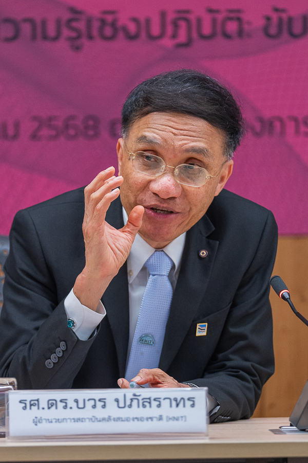 ขณะที่ รศ.ดร.บวร ปภัสราทร ผู้อำนวยการสถาบันคลังสมองของชาติ (KNIT) กล่าวว่า ท่ามกลางระเบียบโลกใหม่ที่เต็มไปด้วยความไม่แน่นอน ความยืดหยุ่นไม่ใช่ทางเลือกอีกต่อไป แต่กลายเป็นความ จำเป็น การจัดการความรู้คือคลังความรู้ที่มีชีวิตขององค์กร ที่คอยนำพาให้องค์กรก้าวผ่านความพลิกพลัน และการ เปลี่ยนแปลงนานาประการ เมื่อความรู้มีการสะสม แบ่งปัน และต่อยอด วิกฤตจะกลายเป็นเส้นทางสู่การปรับตัวและ การเติบโต การมาถึงของปัญญาประดิษฐ์อาจสั่นคลอนสิ่งที่คุ้นเคย แต่ก็เปิดขอบฟ้าใหม่แห่งความเป็นไปได้ ด้วยการ ถักทอภูมิปัญญามนุษย์เข้ากับปัญญาเครื่องจักร การจัดการความรู้จึงแปรเปลี่ยนความพลิกพลันให้เป็นโอกาส และเป็น พลังที่ทำให้องค์กรไม่เพียงทนทานต่อความผันผวน แต่ยังสามารถเติบโตและกำหนดอนาคตของตนเองได้