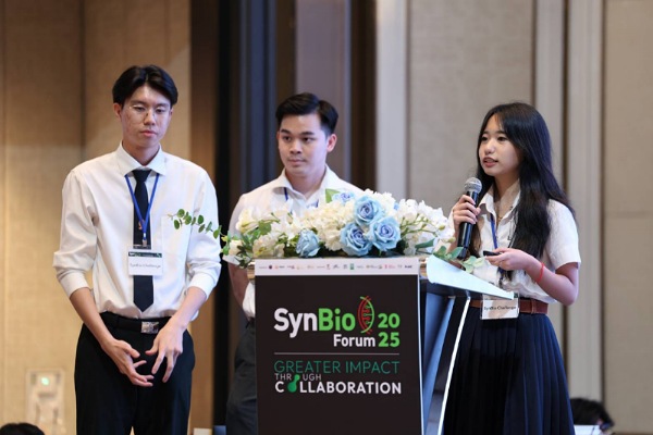 อีกหนึ่งกิจกรรมไฮไลต์ของงานปีนี้คือการแข่งขัน Thailand SynBio Challenge 2025: Designing the Protein for Tomorrow ที่เปิดเวทีให้นักศึกษาและนักวิจัยรุ่นใหม่จากทั่วประเทศ นำเสนอแนวคิดด้านชีววิทยาสังเคราะห์เพื่อออกแบบโปรตีนแห่งอนาคตที่ตอบโจทย์อุตสาหกรรมและความยั่งยืน โดยมีผู้สนใจเข้าร่วมส่งไอเดียประกวดกว่า 29 ทีม และมีทีมที่ผ่านการคัดเลือก จำนวน 9 ทีม จากมหาวิทยาลัยเกษตรศาสตร์ มหาวิทยาลัยมหิดล โรงเรียนกำเนิดวิทย์ มหาวิทยาลัยพะเยา โรงเรียนนิวตัน (The Newton Sixth Form School) จุฬาลงกรณ์มหาวิทยาลัย มหาวิทยาลัยธรรมศาสตร์ โรงเรียนสวนกุหลาบวิทยาลัย รังสิต และมหาวิทยาลัยเทคโนโลยีพระจอมเกล้าธนบุรี โดยผู้ชนะ 3 ทีมจะได้รับรางวัลเดินทางไปศึกษาดูงาน ณ สถาบันเทคโนโลยีขั้นสูงเซินเจิ้น (SIAT) เพื่อแลกเปลี่ยนองค์ความรู้และสร้างเครือข่ายกับนักวิจัยระดับนานาชาติ