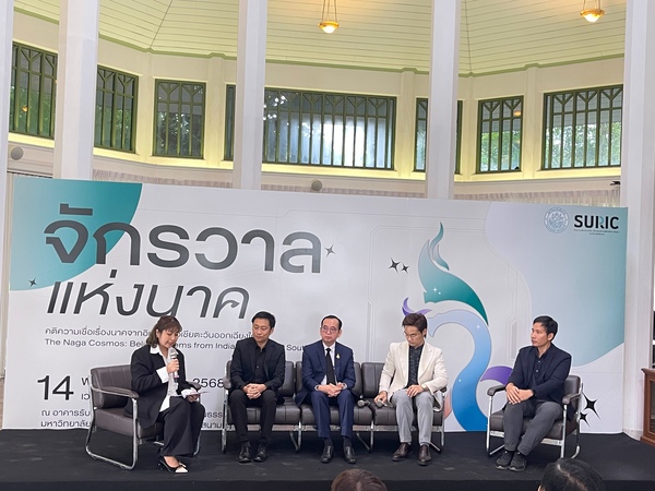 มหาวิทยาลัยศิลปากร จัดงานแถลงข่าวโครงการวิจัยชุด “จักรวาลแห่งนาค : คติความเชื่อเรื่องนาคจากอินเดียสู่อุษาคเนย์ภาคพื้นทวีป” เมื่อวันศุกร์ที่ 14 พฤศจิกายน พ.ศ. 2568 ณ อาคารรับรองเรือนกระจก ศูนย์ศิลปวัฒนธรรมเฉลิมพระเกียรติ 6 รอบ พระชนมพรรษา มหาวิทยาลัยศิลปากร วิทยาเขตพระราชวังสนามจันทร์ภายใต้แผนงาน “การบูรณาการข้ามศาสตร์เพื่อขับเคลื่อนผลกระทบจากงานวิจัยสู่การใช้ประโยชน์” ของมหาวิทยาลัยศิลปากร