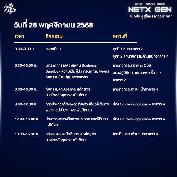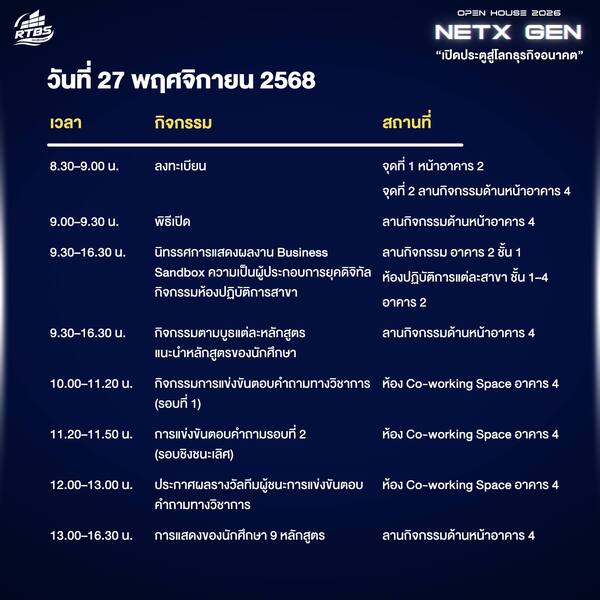 งาน Open House ในปีนี้ถูกออกแบบให้เข้าถึงง่ายและมีความหมาย เน้นประสบการณ์ตรงผ่านห้องปฏิบัติการ อุปกรณ์วิทยาศาสตร์และเทคโนโลยีที่ใช้จริงในหลักสูตร รวมถึงกิจกรรม Workshop ที่ช่วยให้นักเรียนได้ทดลองทักษะใหม่ด้วยตนเอง แนวคิด NextGen ถือเป็นทิศทางหลักของมหาวิทยาลัยในการสร้างกำลังคนรุ่นใหม่ที่ต้องมีทั้งความรู้ ทักษะเทคโนโลยี และความคิดสร้างสรรค์เพื่อรับมือกับความเปลี่ยนแปลงของโลกยุคใหม่ จึงขอเชิญชวนนักเรียน ผู้ปกครอง ครูอาจารย์และผู้สนใจทุกท่าน เข้าร่วมงานในวันพฤหัสบดีที่ 27 และวันศุกร์ที่ 28 พ.ย. นี้ ที่ มทร.ธัญบุรี เข้าร่วมฟรีตลอดงาน