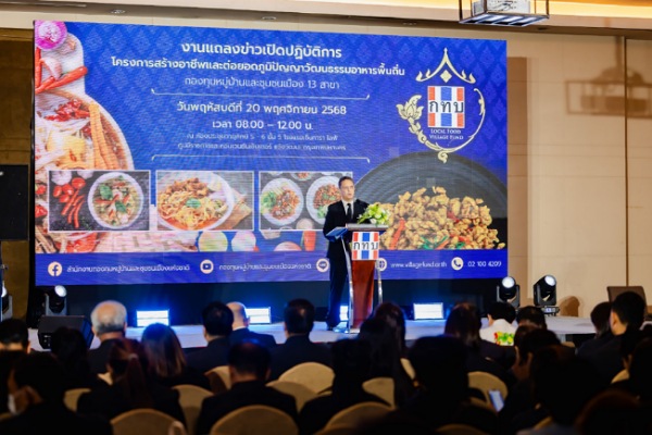 อาชีพและต่อยอดภูมิปัญญาวัฒนธรรมอาหารพื้นถิ่น กองทุนหมู่บ้านและชุมชนเมือง 13 สาขา” โดยนายโสวัฒน์ อยู่คงดี ผู้ช่วยผู้อำนวยการ สำนักงานกองทุนหมู่บ้านและชุมชนเมืองแห่งชาติ ให้เกียรติร่วมแถลง