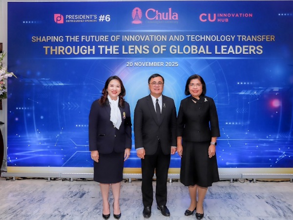 จุฬาลงกรณ์มหาวิทยาลัย ร่วมกับศูนย์กลางนวัตกรรมแห่งจุฬาลงกรณ์มหาวิทยาลัย (CU Innovation Hub) เดินหน้ายกระดับศักยภาพนวัตกรรมและทรัพย์สินทางปัญญาของประเทศ ผ่านการจัดงานเสวนา President’s Distinguished Speaker ครั้งที่ 6 “ก้าวสู่อนาคตของนวัตกรรมและการถ่ายทอดเทคโนโลยีผ่านมุมมองของผู้นำระดับโลก” โดยได้รับเกียรติจาก ศาสตราจารย์ ดร.วิเลิศ ภูริวัชร อธิการบดีจุฬาฯ กล่าวเปิดงาน จากนั้นเป็นการปาฐกถาจากผู้นำระดับโลกด้านทรัพย์สินทางปัญญา นวัตกรรมและการถ่ายทอดเทคโนโลยี คุณ Marco M. Alemán ผู้ช่วยอธิบดีองค์การทรัพย์สินทางปัญญาโลก (WIPO) และคุณ Katharine Ku อดีตผู้อำนวยการฝ่ายบริหารจาก Office of Technology Licensing จาก Stanford University มีคุณอรมน ทรัพย์ทวีธรรม อธิบดีกรมทรัพย์สินทางปัญญา พร้อมด้วยผู้บริหารมหาวิทยาลัย ผู้ทรงคุณวุฒิจากภาครัฐ และผู้บริหารระดับสูงจากภาคเอกชน มาเข้าร่วมเพื่อร่วมยกระดับผลงานวิจัยและทรัพย์สินทางปัญญาไทยสู่ตลาดโลกอย่างคับคั่ง