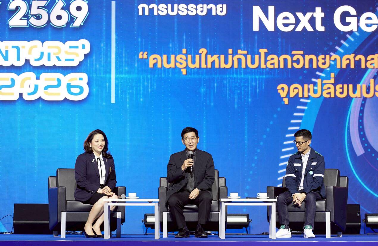 ต่อมา เป็นการเสวนาในหัวข้อ “Next Gen Innovators: คนรุ่นใหม่กับโลกวิทยาศาสตร์แห่งอนาคต จุดเปลี่ยนประเทศไทยด้วยพลังนวัตกรรม” โดย ศาสตราจารย์กิตติคุณ นายแพทย์สุทธิพร จิตต์มิตรภาพ ประธานกรรมการพิจารณางบประมาณด้านวิทยาศาสตร์ วิจัยและนวัตกรรม ปี 2569 ศาสตราจารย์ เภสัชกรหญิง ดร.พรอนงค์ อร่ามวิทย์ รองอธิการบดีจุฬาลงกรณ์มหาวิทยาลัย และคุณไชยวัฒน์ เพชรโลหะกุล บริษัท ตั้งเซียะปิง โลหะกิจ จำกัด รวบรวมมุมมองจาก 3 ภาคส่วน (นโยบาย-การศึกษา-ภาคธุรกิจ) เพื่อตอบโจทย์สำคัญ 5 มิติ ดังนี้