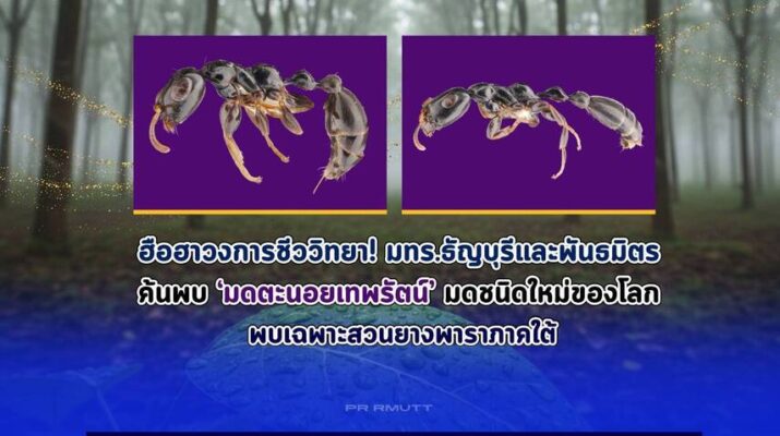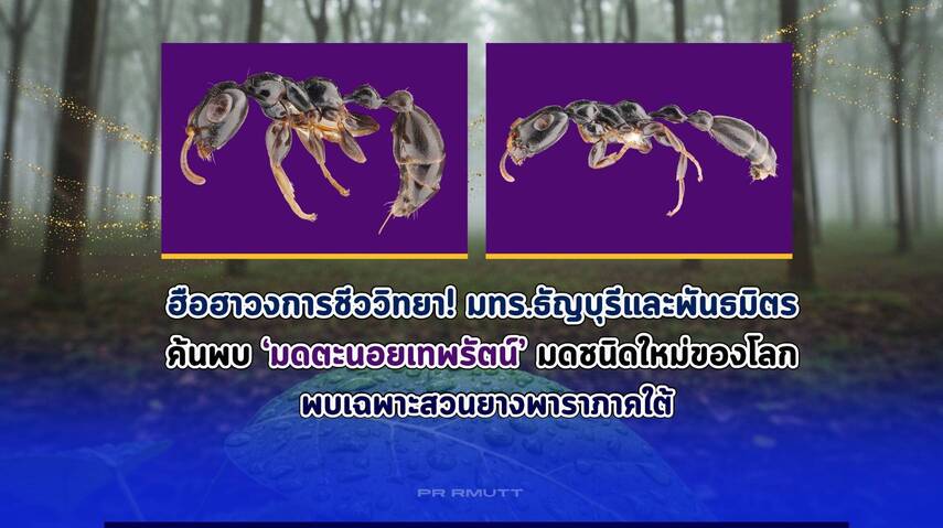 นักวิจัยมหาวิทยาลัยเทคโนโลยีราชมงคลธัญบุรี ร่วมกับนักวิชาการจากองค์การพิพิธภัณฑ์วิทยาศาสตร์แห่งชาติ (NSM) ค้นพบมดชนิดใหม่ของโลกในประเทศไทย พร้อมตั้งชื่อเทิดพระเกียรติ