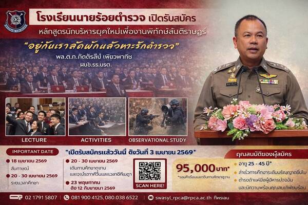 โรงเรียนนายร้อยตำรวจ อำเภอสามพราน จังหวัดนครปฐม ประกาศเปิดรับสมัครผู้สนใจเข้าศึกษาและสัมผัสประสบการณ์แห่งการเรียนรู้ในหลักสูตร “นักบริหารยุคใหม่เพื่องานพิทักษ์สันติราษฎร์ (บพส.) รุ่นที่ 13” หลักสูตรพัฒนาศักยภาพผู้นำผสานองค์ความรู้ด้านการบริหารจัดการยุคใหม่ ที่มีอุดมการณ์และจิตวิญญาณความเป็นผู้พิทักษ์สันติราษฎร์อย่างเข้มข้น ด้วยเจตนารมณ์ในการสร้างผู้นำยุคใหม่ของ พลตำรวจโท ศักดิ์รพี เพรียวพานิช ผู้บัญชาการโรงเรียนนายร้อยตำรวจ