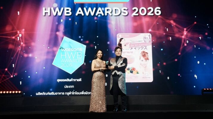 แบรนด์ Vida (วีด้า) สร้างความสำเร็จอย่างต่อเนื่อง ด้วยการคว้ารางวัล Best Selling Food Supplement – Glutathione สุดยอดสินค้าขายดีประเภทผลิตภัณฑ์เสริมอาหารกลูต้าไทโอนเพื่อผิวกระจ่างใส บนเวที Watsons Health Wellness and Beauty Awards 2026 (HWB Awards 2026) ซึ่งถือเป็นหนึ่งในเวทีประกาศรางวัลด้านสุขภาพและความงามที่ได้รับการยอมรับมากที่สุดในประเทศไทย