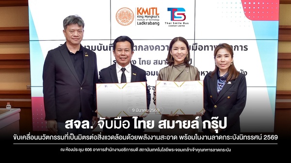 พิธีลงนามจัดขึ้นเมื่อวันที่ 9 มีนาคม 2569 ณ สถาบันเทคโนโลยีพระจอมเกล้าเจ้าคุณทหารลาดกระบัง โดยมี รองศาสตราจารย์ ดร.คมสัน มาลีสี อธิการบดี สจล. และ นางสาวกุลพรภัสร์ วงศ์มาจารภิญญา ประธานเจ้าหน้าที่บริหาร กลุ่มบริษัท ไทย สมายล์ บัส และ ไทย สมายล์ โบ้ท ร่วมลงนามในบันทึกข้อตกลง พร้อมด้วยคณะผู้บริหารจากทั้งสองฝ่ายร่วมเป็นสักขีพยาน โดยมีเป้าหมายในการบูรณาการองค์ความรู้ด้านวิศวกรรม เทคโนโลยี ผังเมือง เข้ากับระบบนิเวศการขนส่งพลังงานไฟฟ้าที่ดำเนินงานจริง เพื่อร่วมกันพัฒนาต้นแบบการเดินทางที่เป็นมิตรต่อสิ่งแวดล้อม และการพัฒนาสังคมอย่างยั่งยืน