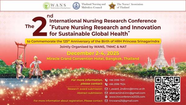 สภาการพยาบาล และ สมาคมพยาบาลแห่งประเทศไทย ในพระราชูปถัมภ์สมเด็จพระศรีนครินทราบรมราชชนนี ร่วมกับ World Academy of Nursing Science (WANS) จัดโครงการประชุมการวิจัยทางการพยาบาลนานาชาติ ครั้งที่ 2 เพื่อเฉลิมพระเกียรติครบรอบ 125 ปี วันคล้ายวันพระราชสมภพสมเด็จพระศรีนครินทราบรมราชชนนี และ ฉลองครบรอบ 40 ปีสภาการพยาบาล ในหัวข้อเรื่อง การวิจัยทางการพยาบาลและนวัตกรรมแห่งอนาคตเพื่อความยั่งยืนของสุขภาพโลก