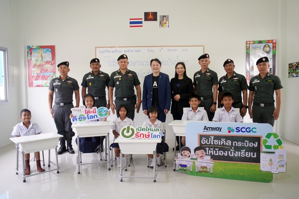 แอมเวย์ จับมือ SCGC ขับเคลื่อนเศรษฐกิจหมุนเวียนอัปไซเคิลบรรจุภัณฑ์พลาสติกใช้แล้วเป็นโต๊ะ-เก้าอี้นักเรียนส่งมอบให้โรงเรียน ตชด. กองกำกับการตำรวจตระเวนชายแดนที่ 11ปลูกฝังจิตสำนึกเยาวชนไทยใส่ใจสิ่งแวดล้อม